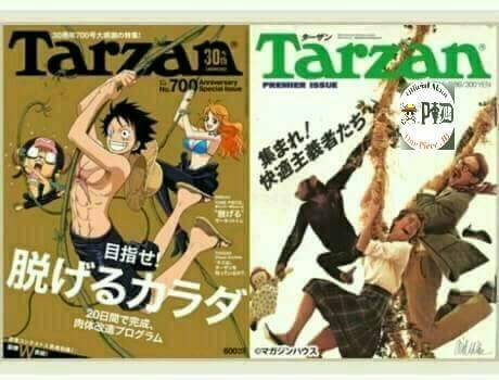Sepertinya ada salah satu cerita yang ceritanya mirip seperti itu :3 Kalau tidak salah sih cerita Tarzan. Oiya kebetulan beberapa hari kemarin ada Cover One Piece yang berkolaborasi untuk memperingati 30th Anniversary Tarzan Magazine (padahal saya terisnpirasi dari sini hihi, cek gambar untuk melihat Covernya).
